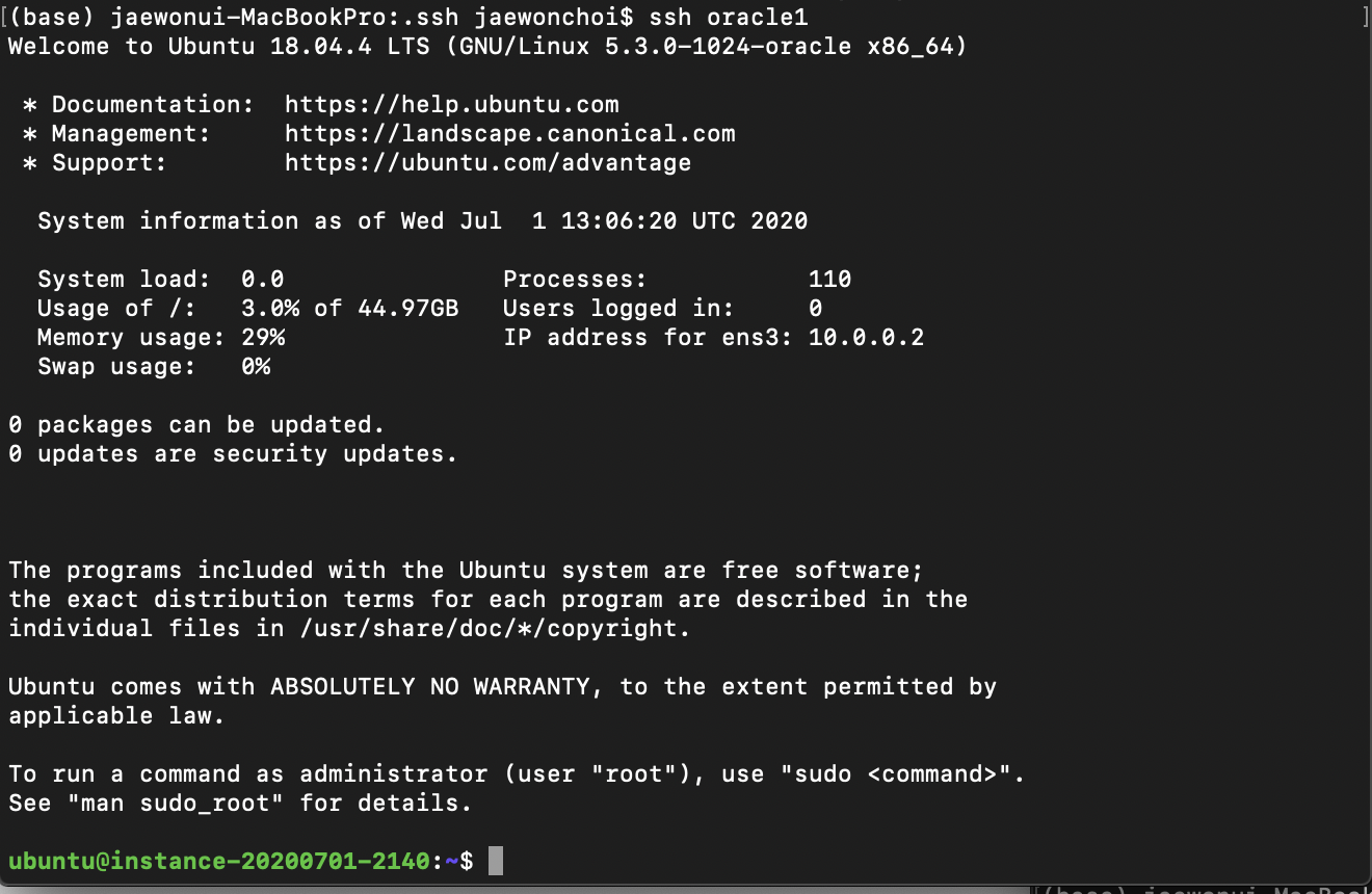 제 컴퓨터가 맥북이라 맥에서 접속하는 방법으로 설명 드리겠습니다. Windows의 경우 putty를 통하여 접속하시면 됩니다.