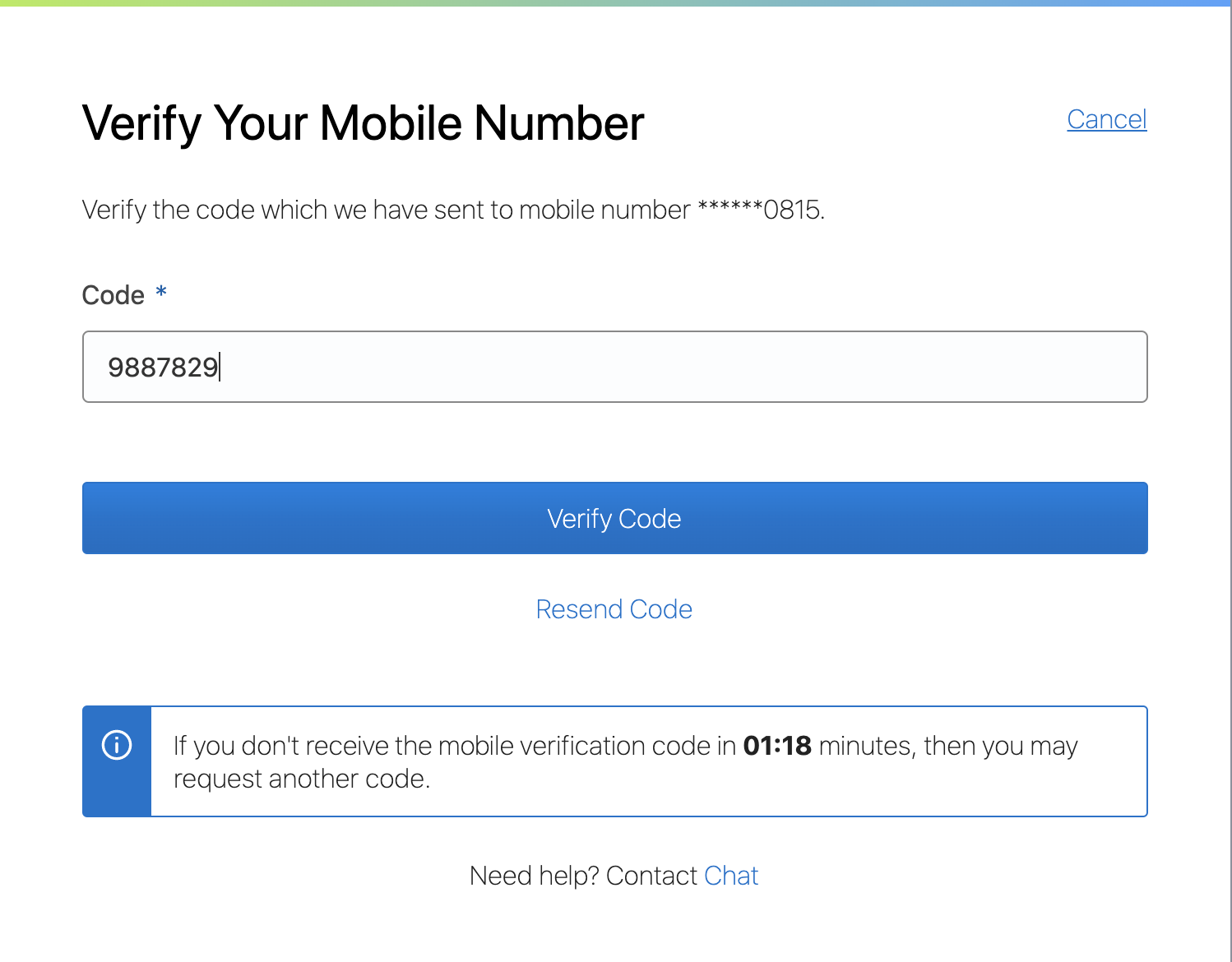 13. Code에 인증번호를 입력하시고 Verify Code 버튼을 클릭 합니다.