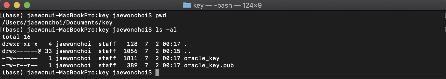 뒤에 ./Documents/key/oracle_key 는 디렉토리 경로와 oracle_key는 키파일명 입니다.