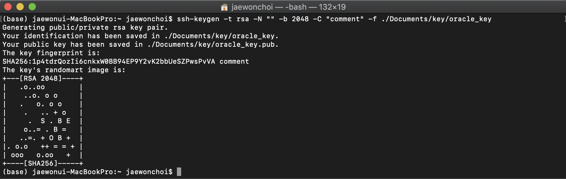 $ ssh-keygen -t rsa -N "" -b 2048 -C "comment" -f ./Documents/key/oracle_key