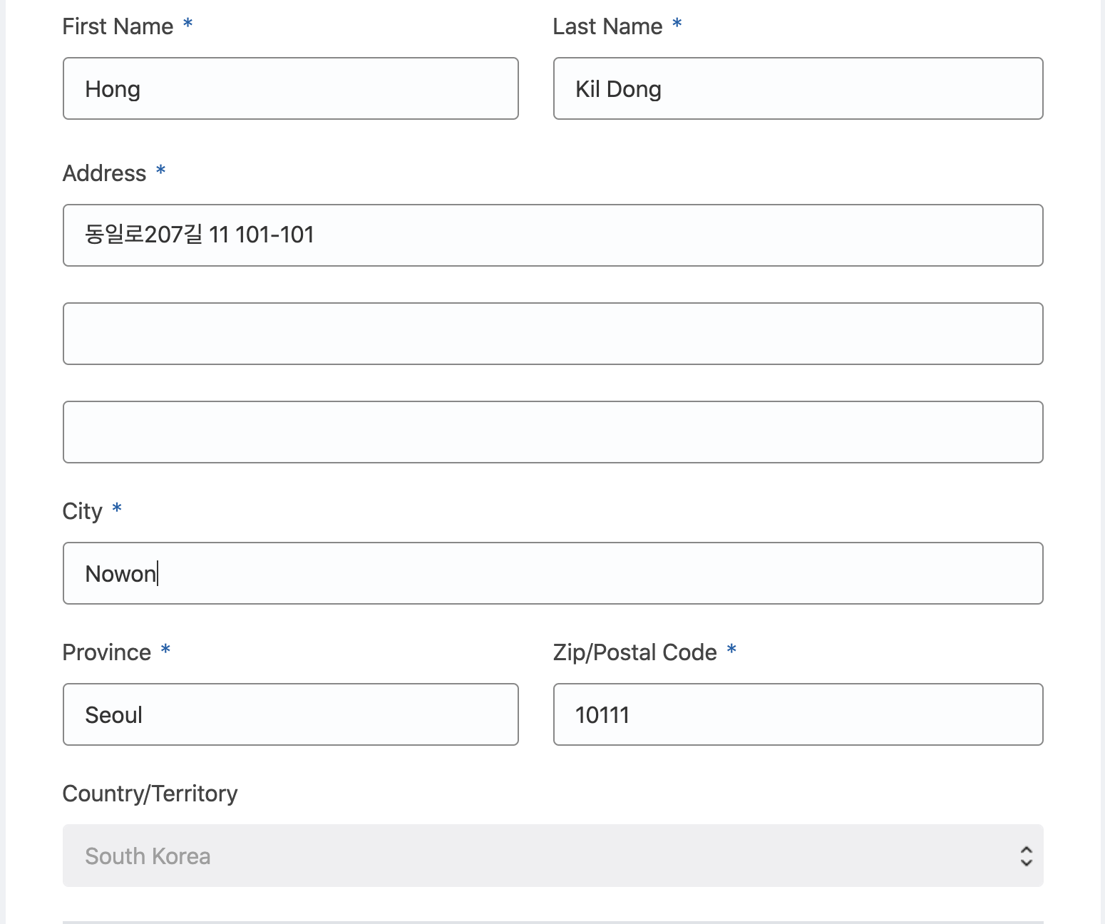 7. Address는 집 상세주소를 입력하시면 됩니다.